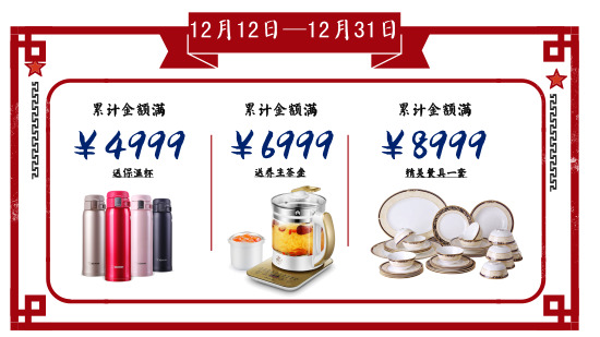 第二重:累計滿送好禮,多滿多送,活動時間:12月12日至12月31日。