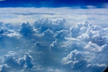 飛機在跑道上開始慢慢的滑動,起飛了——我回座位隨手拿起一本雜志,看了起來。不知什么時候,一道耀眼的陽光從窗外在直射進來,照得襯衣上的鈕扣閃閃發光,我往外一望,哇!好一片藍藍的天空!明媚的陽光照耀著剛才那些烏云,在下面就像一團團的棉花,遠處的云團又好像一群群的綿羊。