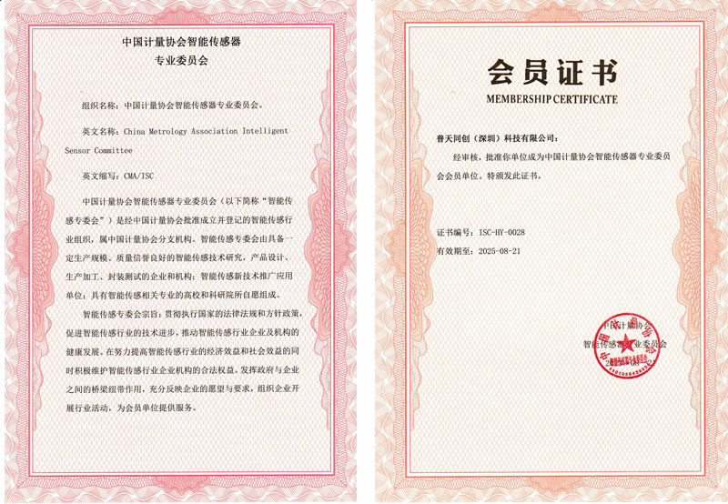 智能傳感器專業委員會是經中國計量協會批準注冊的智能傳感器行業組織,由在智能傳感器技術研究、產品設計、研發、生產、包裝、檢測等方面具有一定生產規模和質量信譽的企事業單位組成。旨在貫徹執行國家法律、法規和政策,促進智能傳感器行業技術進步,促進智能傳感器行業企事業單位健康發展。在努力提高智能傳感器行業經濟和社會效益的同時,積極維護智能傳感器行業企事業單位的合法權益。2023年9月,經過嚴格的審核和考察,普天同創正式成為中國計量協會智能傳感器專業委員會成員。
